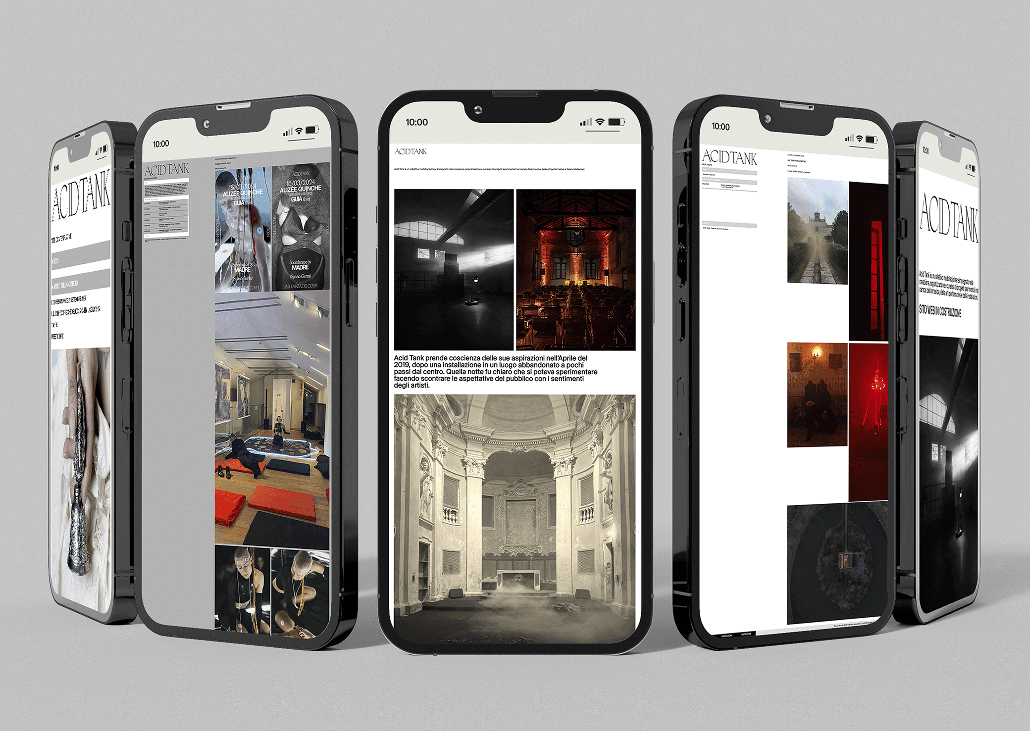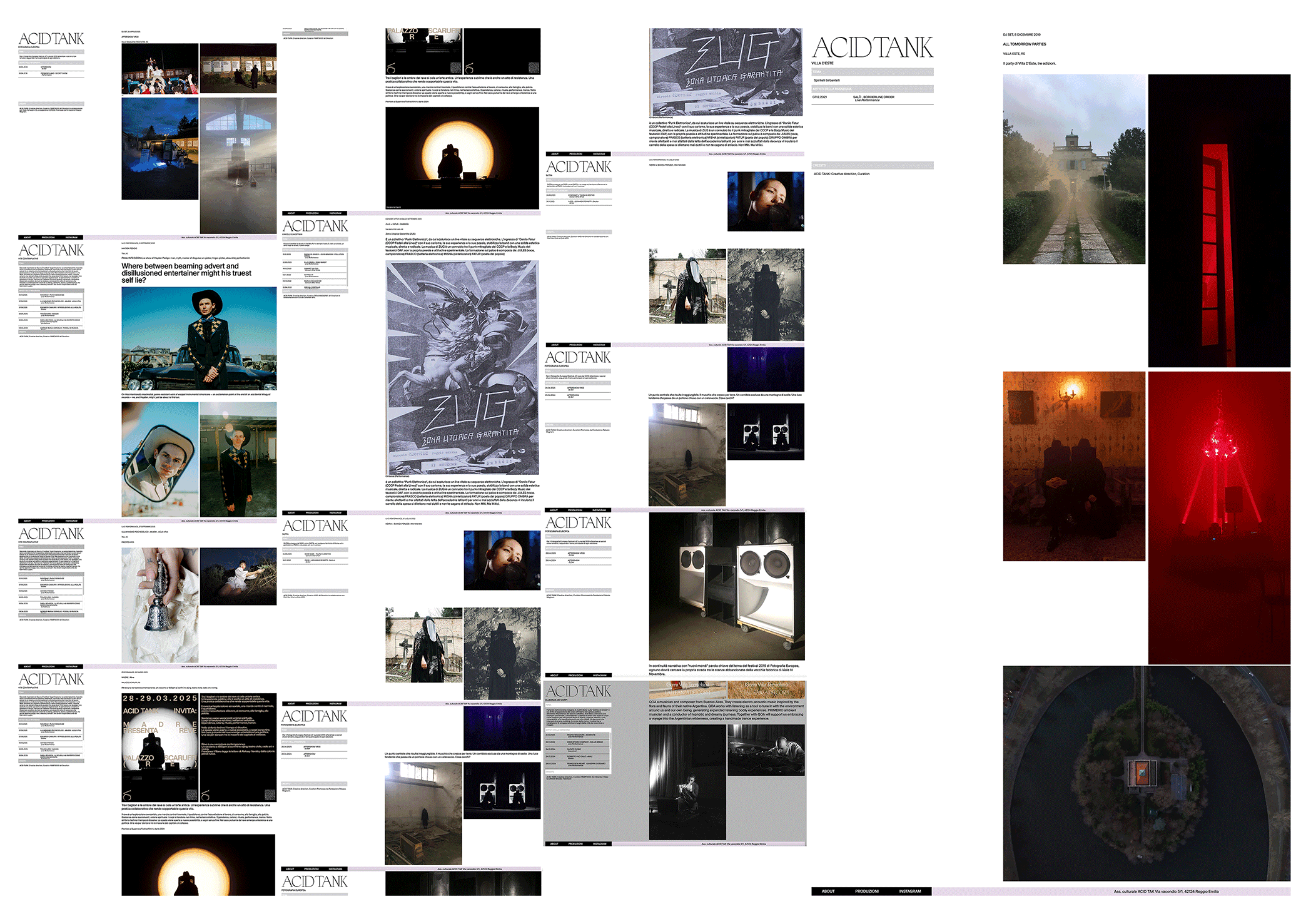 Visually and conceptually, the platform reflects a precise yet raw language: minimal grids disrupted by expressive imagery, documentation that feels both archival and immediate, and compositions that echo the layered nature of sound itself.