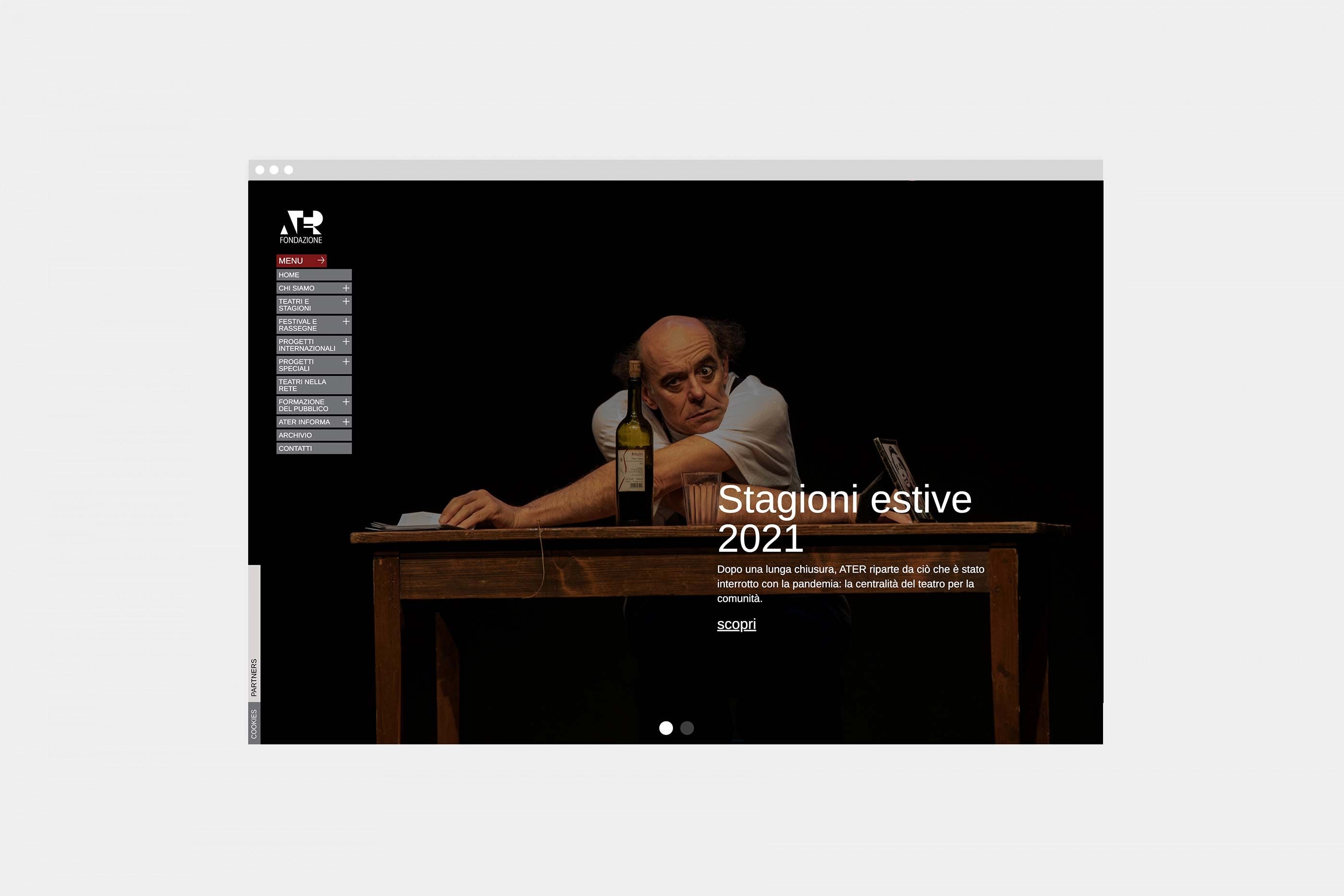Designing the new website for ATER Foundation meant translating the energy of live performance into a digital space capable of connecting theatres, artists, and audiences across Emilia-Romagna.