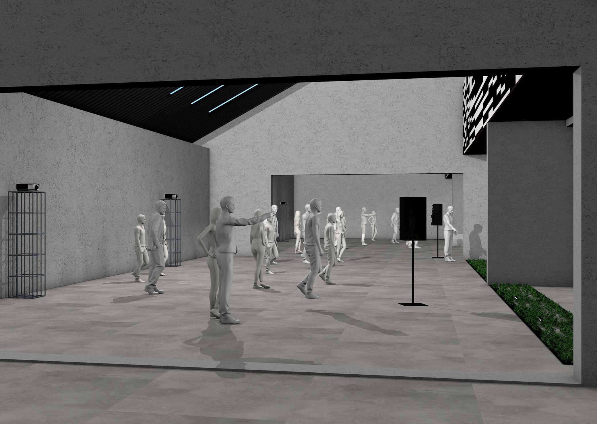 Our rendering work was instrumental in articulating this vision with clarity and depth. Rather than static images, the visualizations became narrative tools that revealed the installation’s evolving states, the way light threads through arcades, and how digital sequences inhabit historical space without erasing it. Each render serves as both a technical schema and an evocative experience helping institutions and audiences alike to see Lineare not only as a project, but as a proposition: a live conversation between heritage and innovation.